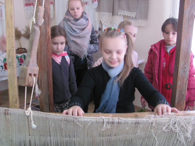 Особенно понравилось ребятам из кружков «Колосок» (педагог – Борсук А.Н.) и «Игрушечка» (педагог – Абрамчик Н.Н.) попробовать свои силы на ткацком станке. Во время экскурсии мы все по очереди ткали дорожку-ходник, очень радовались новому виду рукоделия, и в конце нашего мастер-класса очень удивились, что всей группой смогли соткать только несколько сантиметров изделия.