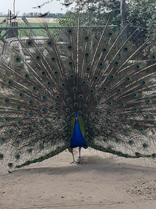 Из далекого прошлого, мы переместились на современную птичью фазенду Галины Качановской, где обитают необыкновенной красоты павлины. Вот, уж где мы налюбовались красочными перьями и наслушались пения этих птиц! А вы знали, что павлины не боятся морозов и преспокойно зимуют на улице, залетая на высокие елки! Мы не знали!